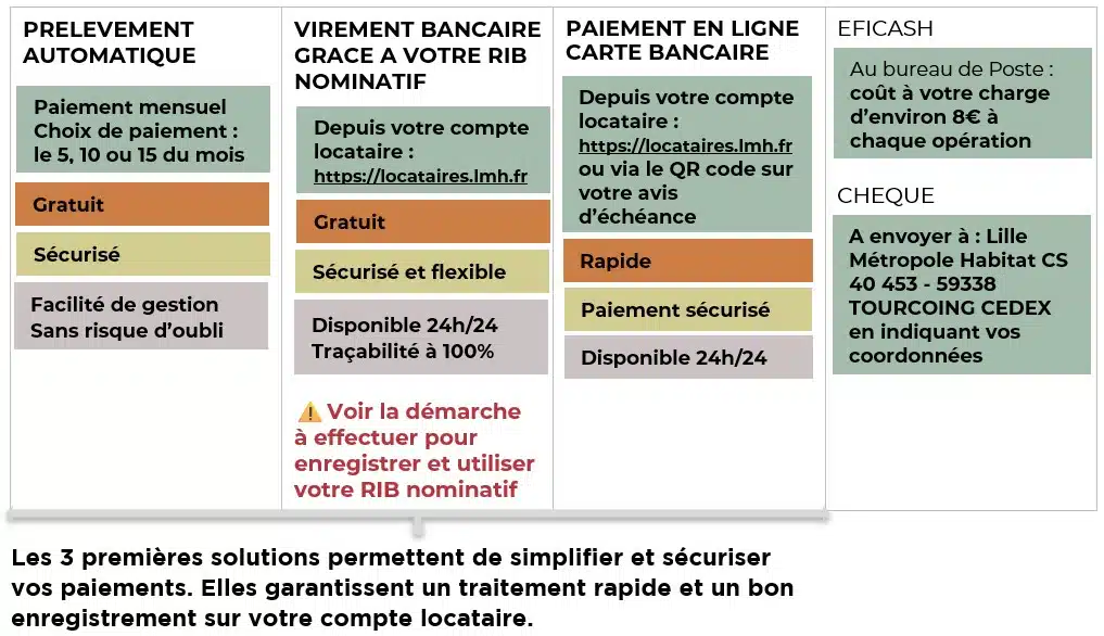 Lille Métropole Habitat a mis en place des moyens de paiement sécurisés et simplifiés pour le règlement de votre loyer.
